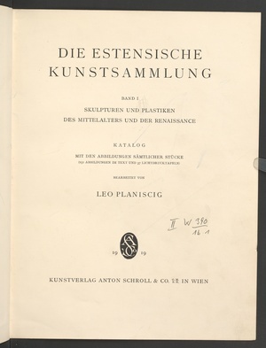 Skulpturen und Plastiken des Mittelalters und der Renaissance : Katalog mit den Abbildungen sämtlicher Stücke (251 Abbildungen im Text und 37 Lichtdrucktafeln) / bearbeitet von Leo Planiscig