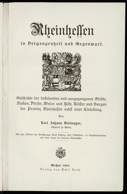 Rheinhessen in Vergangenheit und Gegenwart : Geschichte der bestehenden und ausgegangenen Städte, Flecken, Dörfer, Weiler und Höfe, Klöster und Burgen der Provinz Rheinhessen nebst einer Einleitung / von Karl Johann Brilmayer