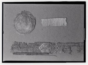 Glasplattennegativ: Handschuhmedaillon Philipps von Schwaben und Seidenband eines Bischofs