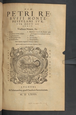 Dom. Petri Rebvffi Montepessvlani Ivr. Vtr. Doct. Ac Comit. Tractatus Nouem, De 1 Decimis. 2 Alienatione rerum ecclesiæ. 3 Congrua portione. 4 Pacificis possessoribus. 5 Nominationibus. 6 Repetit. l. vnic. C. De sentent. quæ pro eo quod interest, proferuntur. 7 Feudis. 8 Seruitutibus. 9 Exceptionibus.