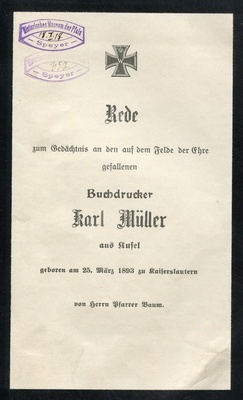 Gedächtnisrede "Karl Müller"