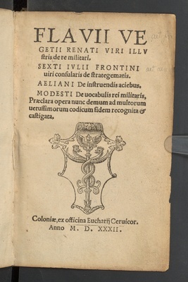 Flavii Vegetii Renati De Re militari : praeclara opera nunc demum ad multorum vetussimorum codicum fidem recogn. & castigata