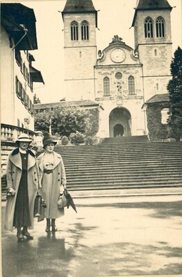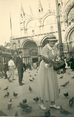 Abbildung einer Dame vor dem Markusdom in Venedig