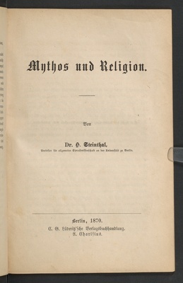 Mythos und Religion / von Dr. H. Steinthal, Professor für allgemeine Sprachwissenschaft an der Universität zu Berlin