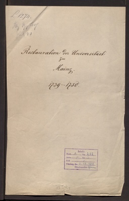 L 1273 - Protokoll und Akten über die Restauration der Universität zu Mainz. 45 Prod.