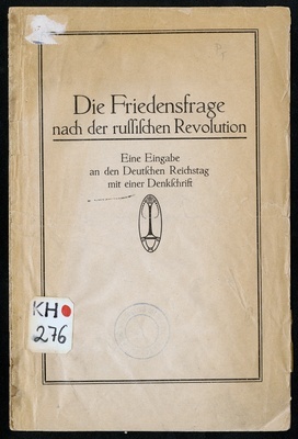 Die Friedensfrage nach der russischen Revolution : eine Eingabe an den Deutschen Reichstag mit einer Denkschrift