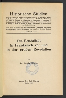 Die Feudalität in Frankreich vor und in der großen Revolution / von Martin Göhring