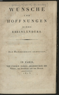 Wünsche und Hoffnungen eines Rheinländers / [Verf.: Johann Friedrich Benzenberg]