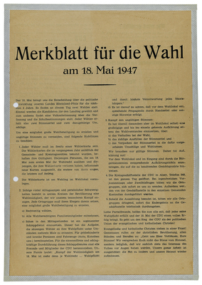 "Merkblatt für die Wahl am 18. Mai 1947" - Landtagswahl und Volksabstimmung in Rheinland-Pfalz