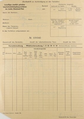 Tuberkuloseuntersuchungsprotokoll für Rinder