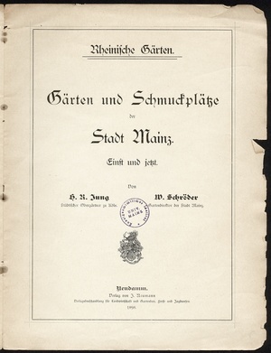 Gärten und Schmuckplätze der Stadt Mainz : einst und jetzt / von H. R. Jung, Städtischer Obergärtner zu Köln, W. Schröder, Gartendirektor der Stadt Mainz