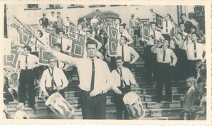 Freitreppe Schloss Sayn mit Fanfaren-Zug "Rot-Weiß", Bendorf-Stromberg, 1959