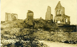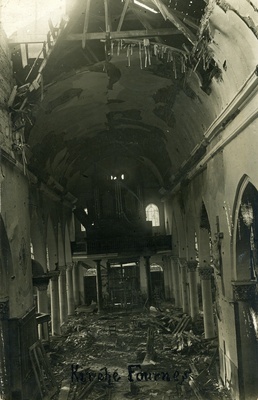 Fotopostkarte "Beschädigte Kirche" Fournes-en-Weppes