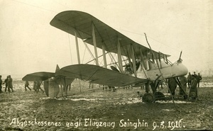 Fotopostkarte "Abgeschossenes engl. Flugzeug bei Sainghin"