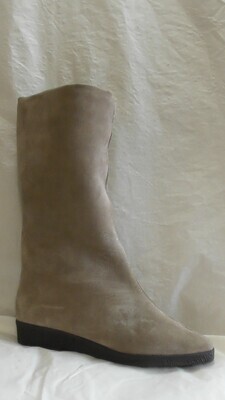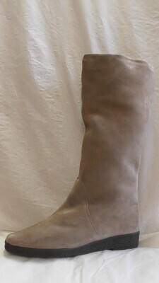 Spitzer beiger Damenstiefel aus Veloursleder.