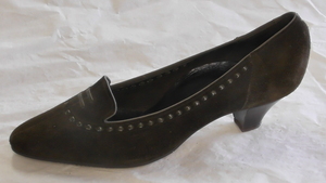 Dunkelbrauner Pumps aus Veloursleder mit Zierflechtungen