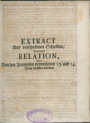 Extract Aus verschiedenen Schreiben/ Samt einer Relation, Was Von den Frantzosen verwichenen 13. und 14. May verübet worden