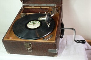 Tragbares Koffergrammophon mit Federantrieb