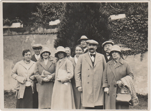 Gäste der Pension Lorscheid im Gruppenfoto vor einer Mauer im Garten