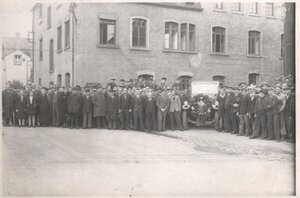 Schwarz-Weiß-Aufnahme Fertigstellung 500ster Schlepper der Firma Zettelmeyer