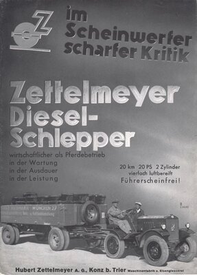 Werbeprospekt der Firma Zettelmeyer für Diesel-Schlepper