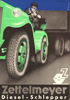 Werbeplakat für einen Diesel-Schlepper der Firma Zettelmeyer