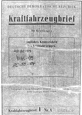 Kraftfahrzeugbrief eines Zettelmeyer Schlepper Z 2
