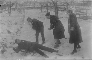 Leute mit Schlitten