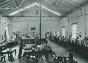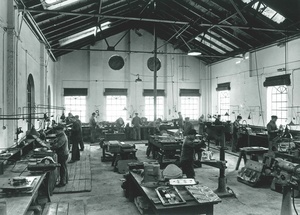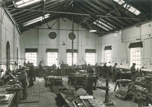 Schwarz-Weiß-Aufnahmen der Schlosserei der Firma Zettelmeyer