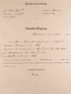 Auszug aus dem Grundverzeichnis des Katasteramtes Schweich (18. März 1912)