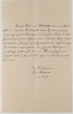 Empfehlungsschreiben für Anna Weiss aus Wolsfeld 1894