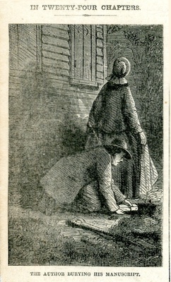 The author burying his manuscript : ein Mann vergräbt heimlich das Manuskript einer Schrift / T.N.