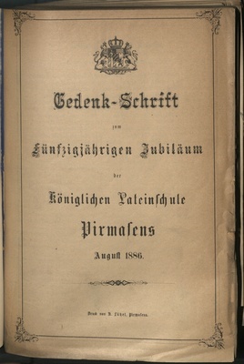 Gedenk-Schrift zum fünfzigjährigen Jubiläum der Königlichen Lateinschule Pirmasens