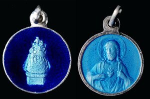Medaille mit Abbildungen "Herz Jesu" und "Unsere Liebe Frau von der Pforte der Morgenröte"