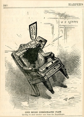 One more Democratic plot. Ink-ling to steal another seat from the Republicans : ein mit Tinte beschmierter Sessel fällt um / Th. Nast