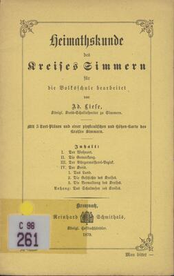 Heimathskunde des Kreises Simmern / für die Volksschule bearb. von Ad. Liese