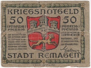 Kriegsnotgeld 50 Pfennig Stadt Remagen 1918