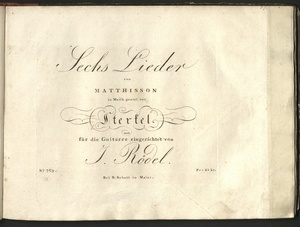 Sechs Lieder von Matthisson / in Musik gesetzt von Sterkel ; für die Guitarre eingerichtet von J. Rödel