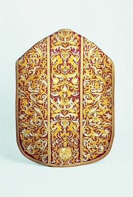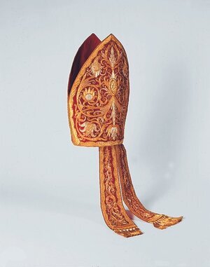 Dunkelbraune "Ohreisenmütze" mit goldenener Bouillonstickerei