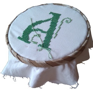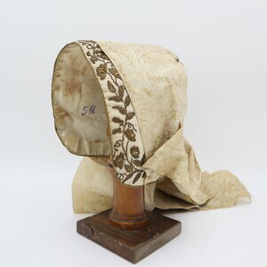 Bestickte Trachtenhaube mit Dekorativem Band in Beige