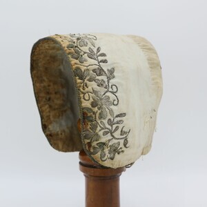 Weiße Trachtenhaube mit Silberner Metallstickerei