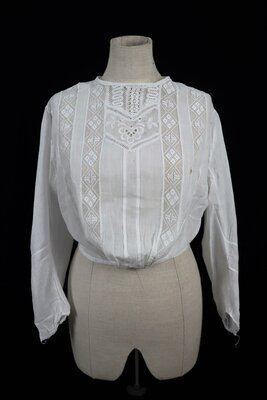 Weiße Trachtenhaube mit Goldener Bouillonstickerei und Dekorativem Band in Gold