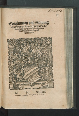 Constitution vnd Satzung || eynes Ersamen Rahts der Freyen Reichs-||statt Straßburg/ wie der Ehebruch vnd an-||dere Vnzucht hinf[ue]ro gestrafft || werden sollen.||
