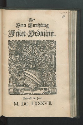 Der Statt Straßburg Feuer-Ordnung : [Decretum Freytags den 4. Junii 1688.]