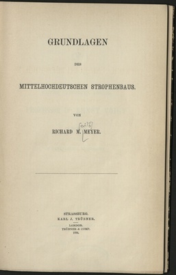 Grundlagen des mittelhochdeutschen Strophenbaus / von Richard M. Meyer