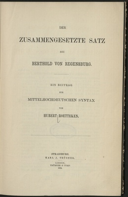 Der zusammengesetzte Satz bei Berthold von Regensburg : Ein Beitrag zur mittelhochdeutschen Syntax / Hubert Roetteken