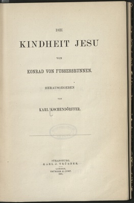 Die Kindheit Jesu / Konrad von Fussesbrunnen. Hrsg. von Karl Kochendörffer