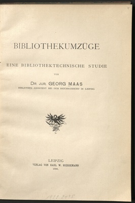 Bibliothekumzüge : eine bibliothektechnische Studie / von Georg Maas