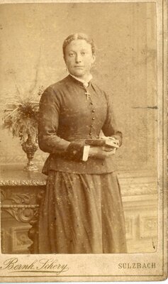 Junge Frau im Ausgeh- od. Trauerkostüm und Hut