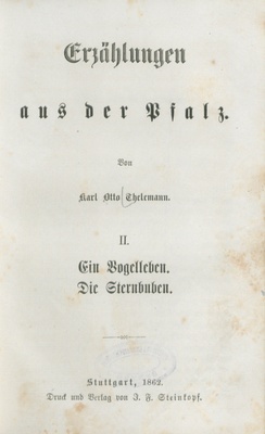 Erzählungen aus der Pfalz - Ein Vogelleben [u.a.] - 1862 / von Karl Otto Thelemann